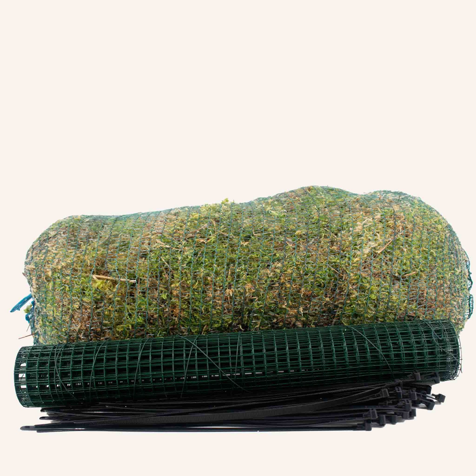 The moss is harvested on a sustainable schedule from The Netherlands, with a very short supply chain, directly from the farm to our warehouse! The tye wraps are biobased! The garden fence isn't sustainable per se, but we haven't found a great alternative yet. Do make sure to re-use it if you remove the pole!