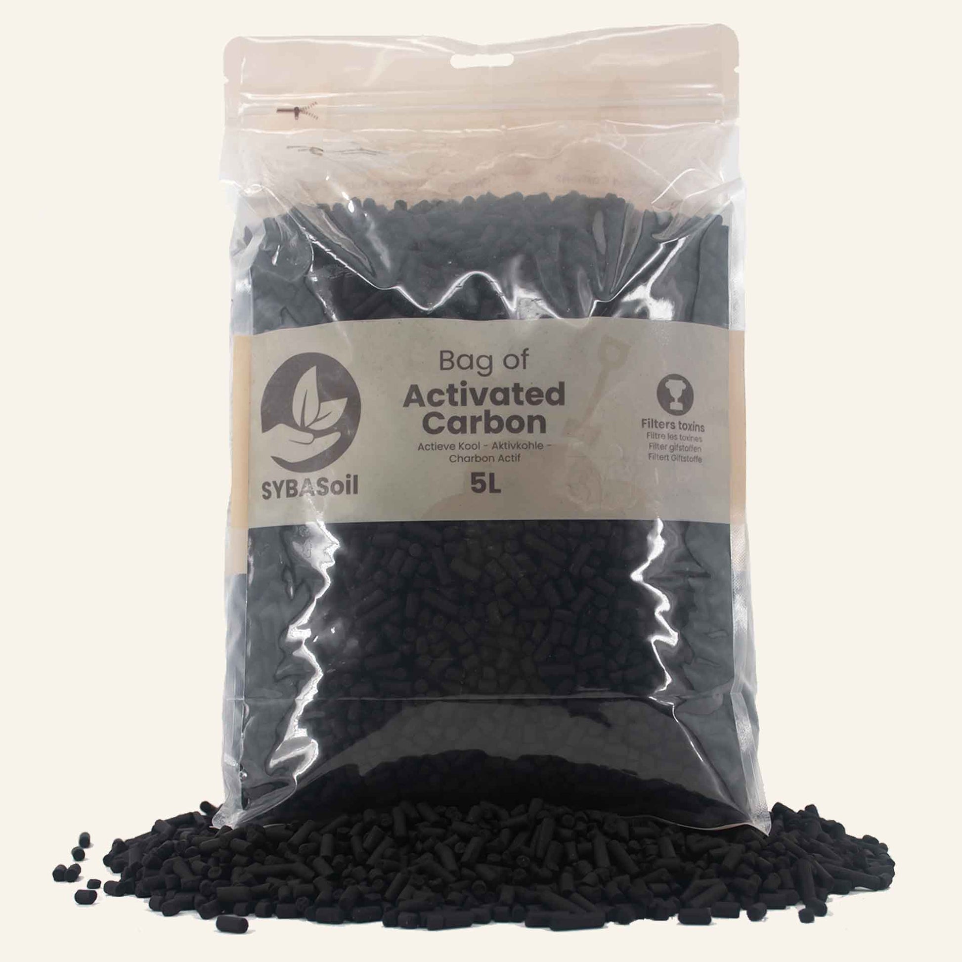 Sybotanica käyttää korkealaatuista aktiivihiiltä kätevissä, uudelleen suljettavissa pusseissa, jotka ovat heti käyttövalmiita. Toisin kuin karkeat hiilipalat, pellettimuotoisella hiilellä on jopa 100 kertaa suurempi pinta-ala, mikä parantaa huomattavasti sen imeytymiskykyä suodatuksessa, puhdistuksessa ja hajujen hallinnassa.