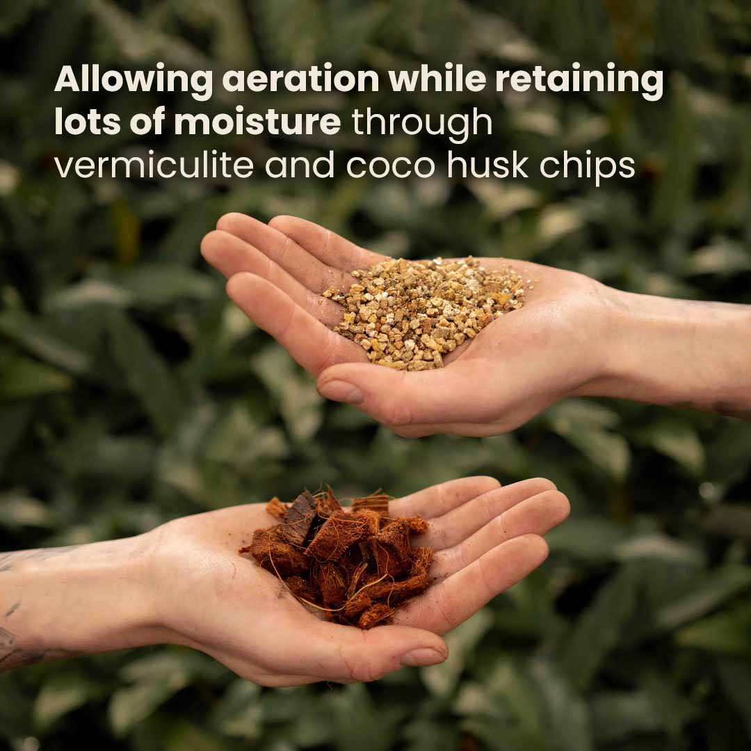 Pitää Alocasiat Onnellisina. Ilmava ja vettä pidättävä, vähentää kastelutarvetta ja kuivuneita lehtiä, auttaa estämään juurimätää ja jäljittelee sen luonnollista ympäristöä.