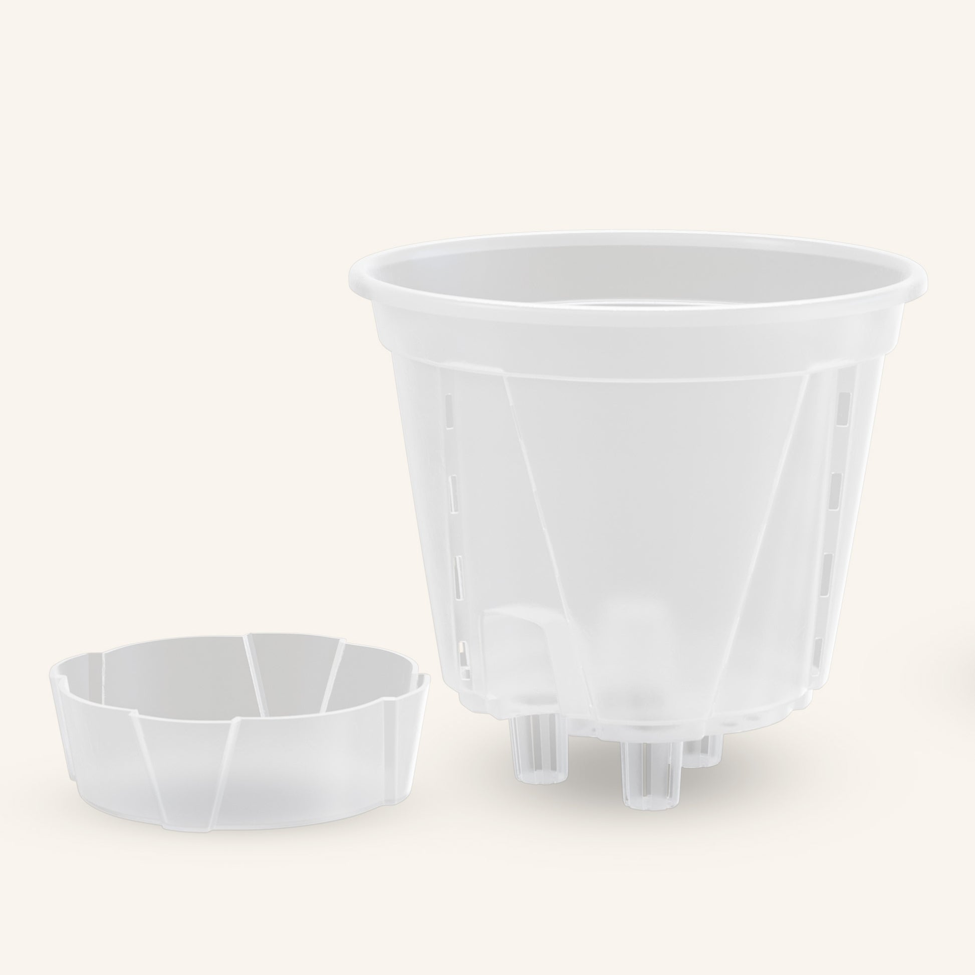 Nämä helppohoitoiset ruukut on valmistettu kestävästä PP5-muovista ja ovat täysin kierrätettäviä. Niissä yhdistyvät minimalistinen muotoilu ja käytännöllinen toiminnallisuus. Niiden siisti ulkonäkö sopii saumattomasti mihin tahansa sisustukseen, ja niiden läpinäkyvyys helpottaa uusien juurien, homeen tai kosteusongelmien havaitsemista varhaisessa vaiheessa.