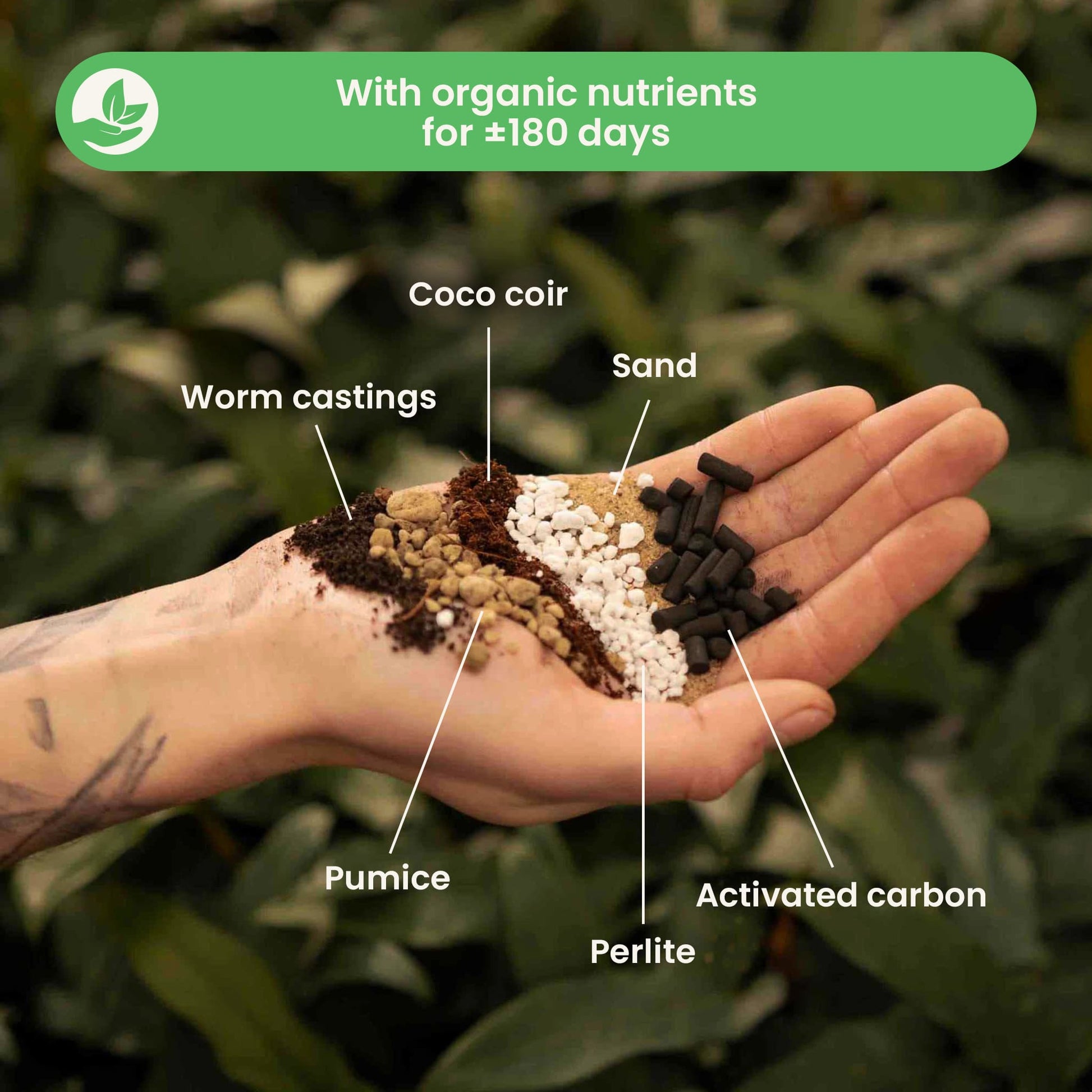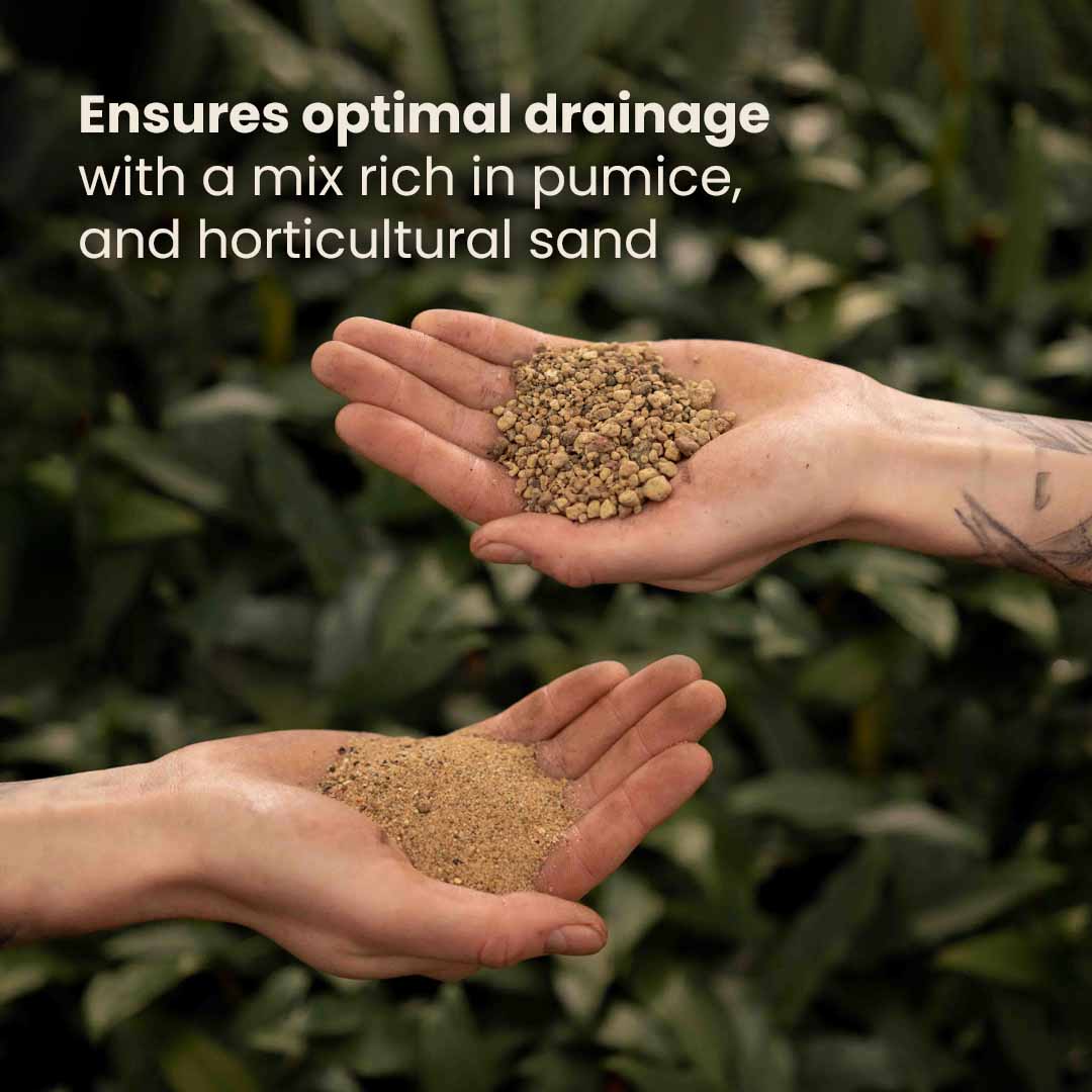 Pitää kaktukset ja mehikasvit onnellisina. Sorainen koostumus kuivuu nopeasti, vähentäen liikakastelun riskiä ja jäljitellen luonnollisia olosuhteita.