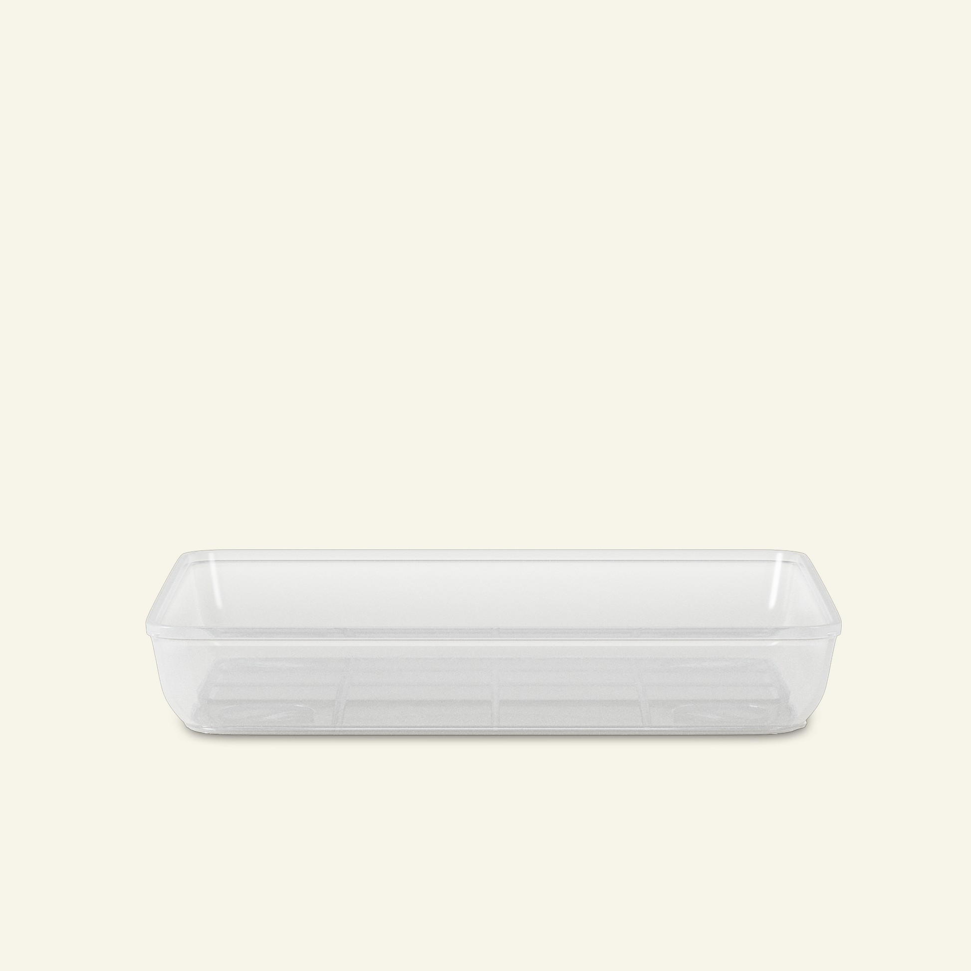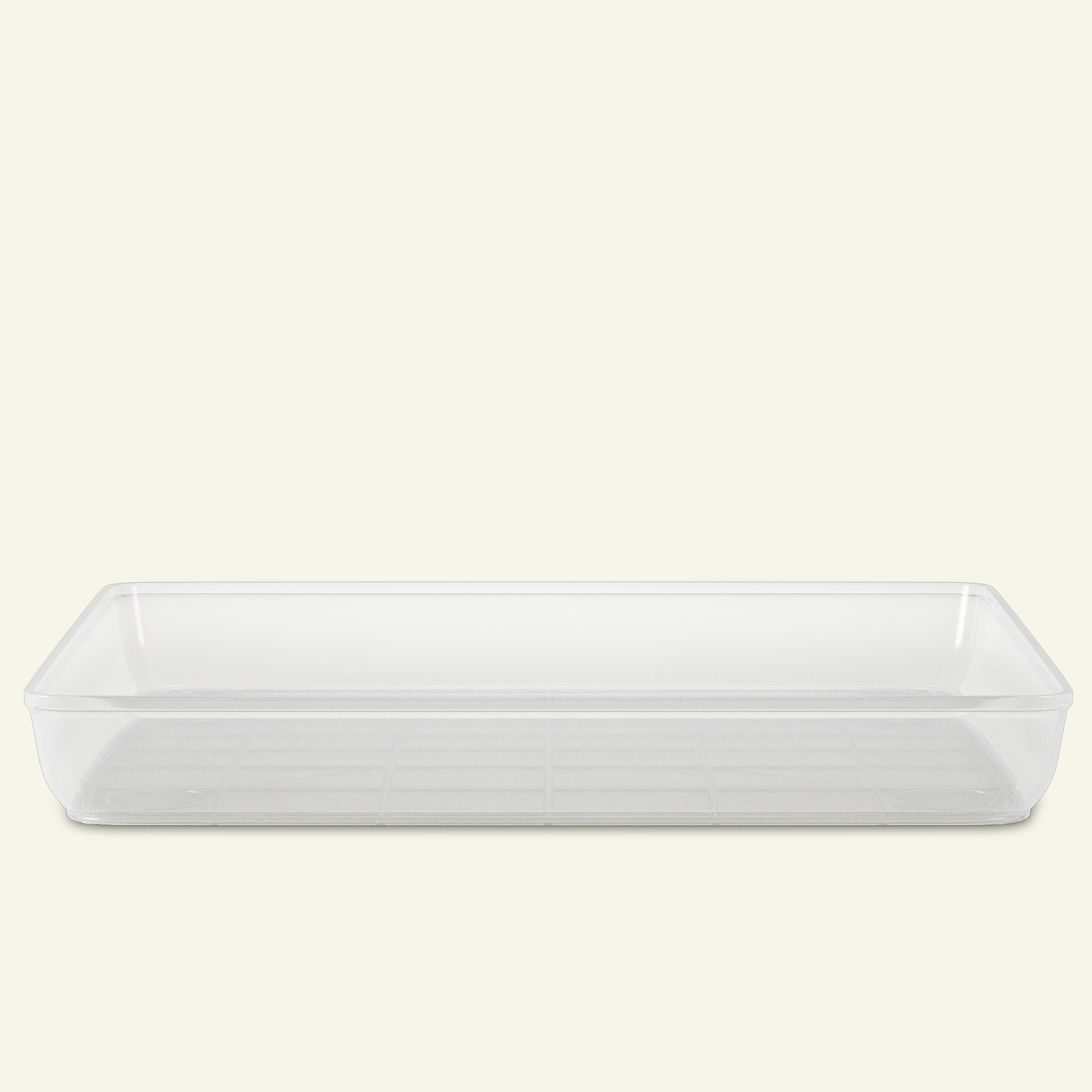 Täysin kierrätettävästä PP5-muovista valmistettu neliönmuotoinen tippakaukalo on kevyt mutta tukeva alusta, joka sopii täydellisesti mihin tahansa minimalistiseen kasvikokoelmaan. Läpinäkyvä rakenne tarkoittaa, että varjoja ei synny eikä valoa esty, mikä on suuri etu, kun haluat, että jokainen auringonsäde saavuttaa kasvien alemmat kerrokset.